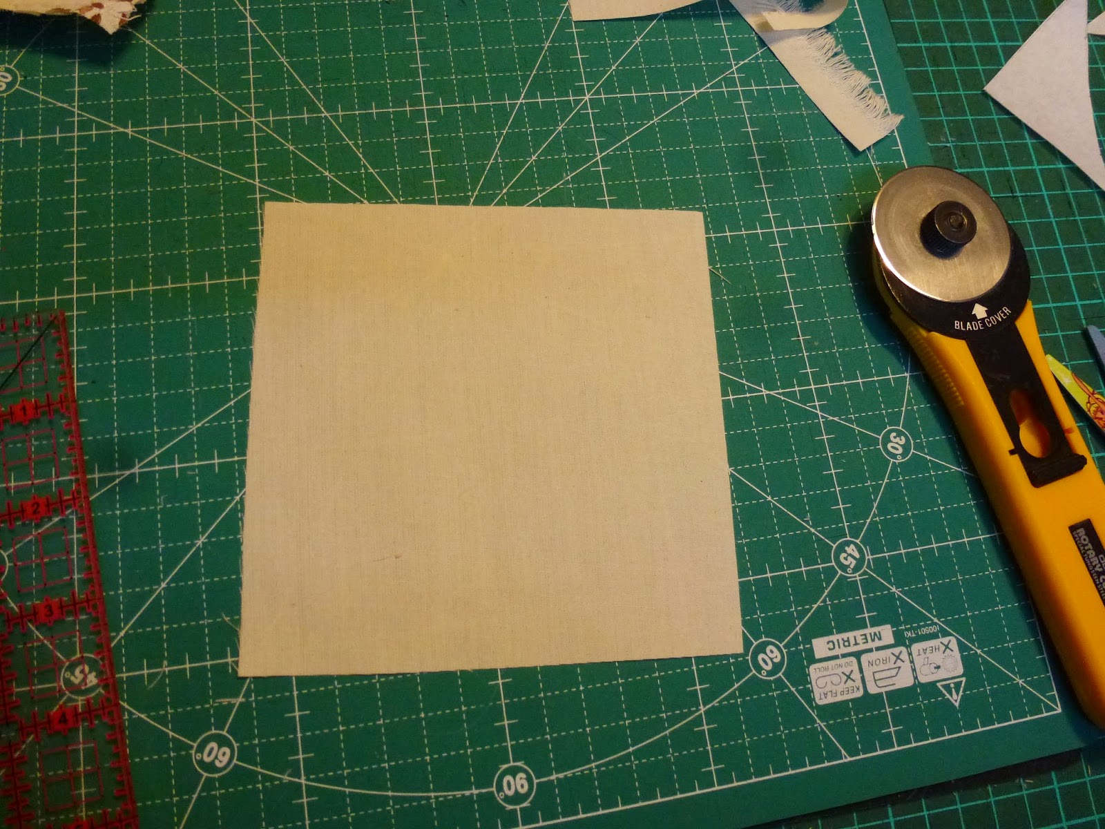 BUENO PARA LOS TRIÁNGULOS DECIDÍ QUE ERA MAS FÁCIL LA TÉCNICA DE ROTARY CUTTING QUE QUIERE DECIR BÁSICAMENTE USAR EL MATT, CUTTER, Y REGLA